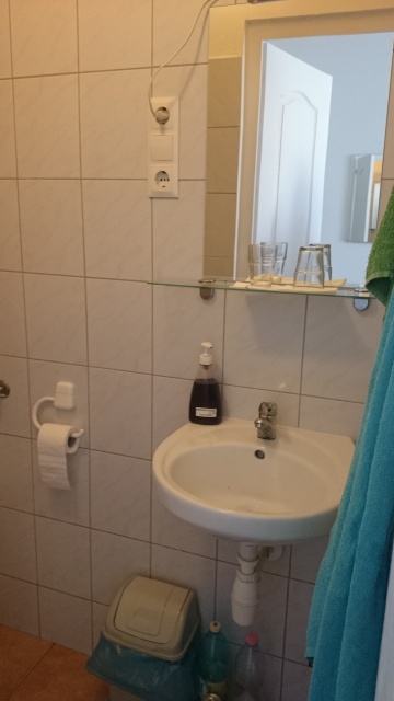 The first thing I noticed was the many power outlets. Yay. The TV was tiny (no , seriously) and useless (it had some Hungarian channels). The wifi did work when we were alone in the guest house.